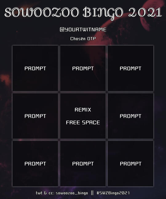 Based off the idea of microcosm, our bingo challenges participants to create a seamless story via bingo squares. Each card will have it's own self-contained universe -- what that universe is, is all up to you!